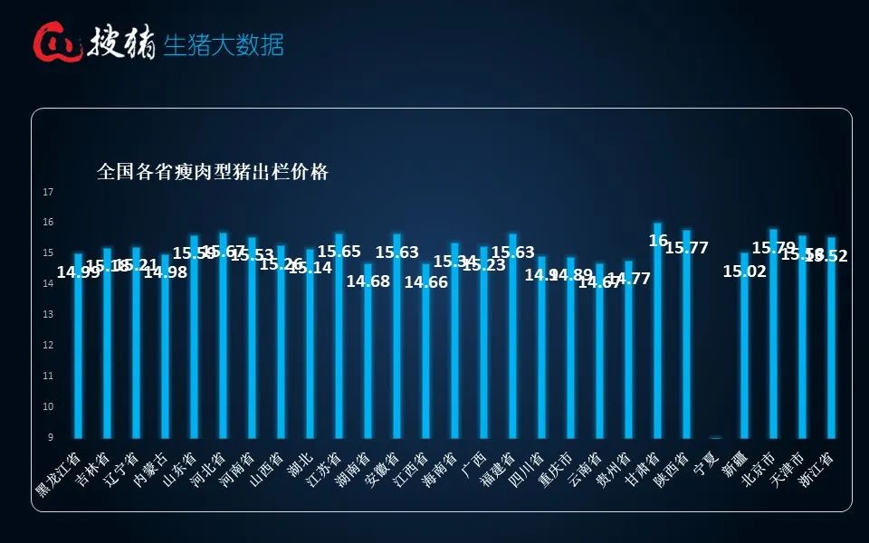 当天猪价呈现进一步下落态势,南北各地跌幅再次加大,全体来看除朔方部分地区报价跌幅相对较小,较昨日微幅走低0.05-0.15元/公斤,其余绝大多半地区报价广大下落0.2-0.5元/公斤把握,全体猪价要点不息下移,至此西南全线报价跌至14.6-14.9元/公斤,东北部分地区猪价再次跌破15元/公斤至14.9元/公斤,其余步区主流报价在15-15.7元/公斤。狂放发稿时,大部分地区报价回涨0.1-0.3元/公斤。