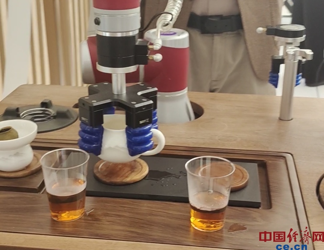 茶艺机器东说念主可模拟煮茶众人手法,提供浅易、隧说念的用茶体验。中国经济网记者 朱晓倩/摄